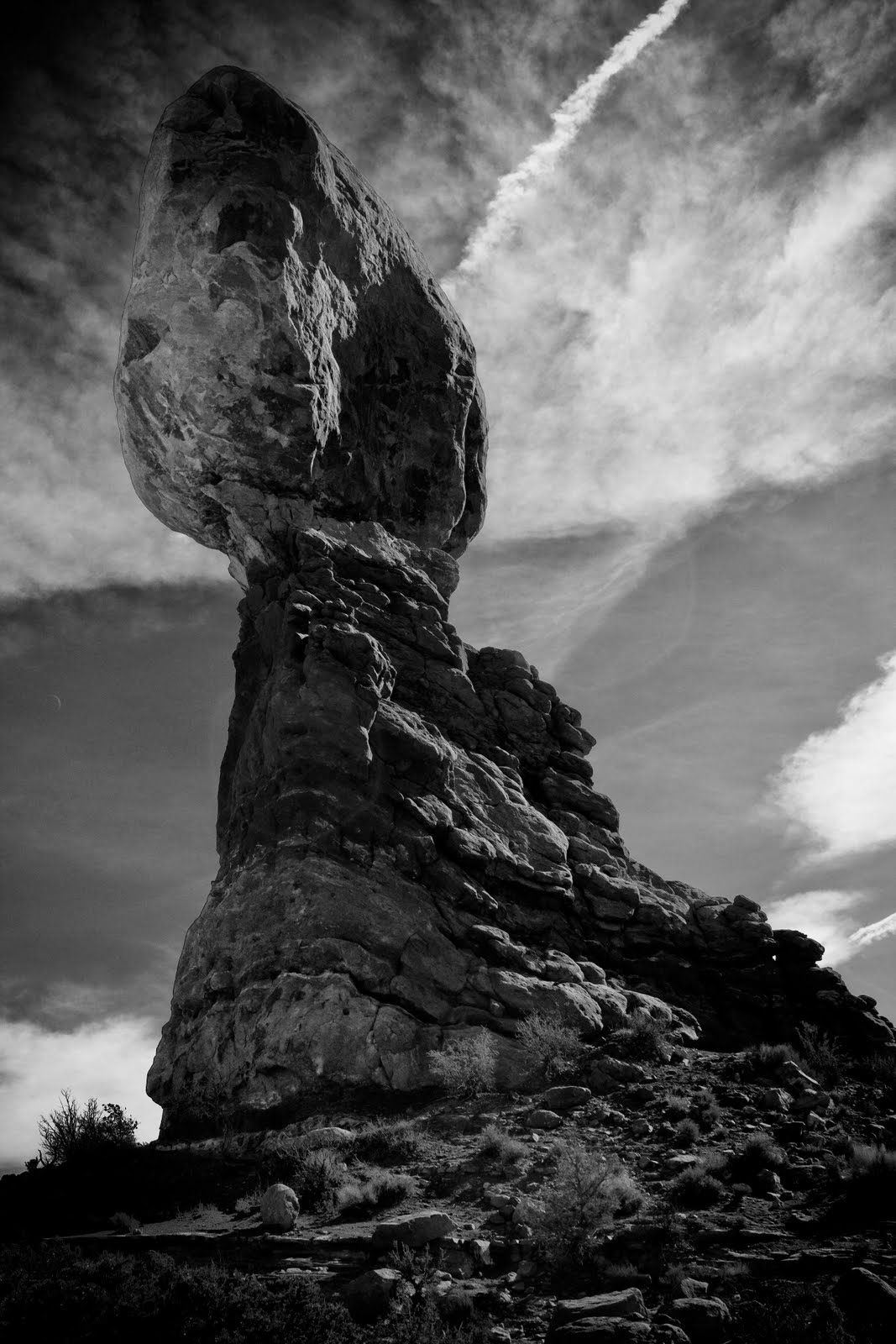 As I made my way back up the hill I heard one last sound, the scraping of hiking boots over the rocks as another hiker emerged from the arch into the scrub field. I could no longer hear the sounds of the meadowlark and the ant and the rat, only the ordinary daily sounds of sand on boot soles and zippers clicking and jacket swishing. The morning was over and the day had begun and I made my way out of the field. As I left, I turned to look at the boulder and saw that the kangaroo rat had resumed her place at its summit.